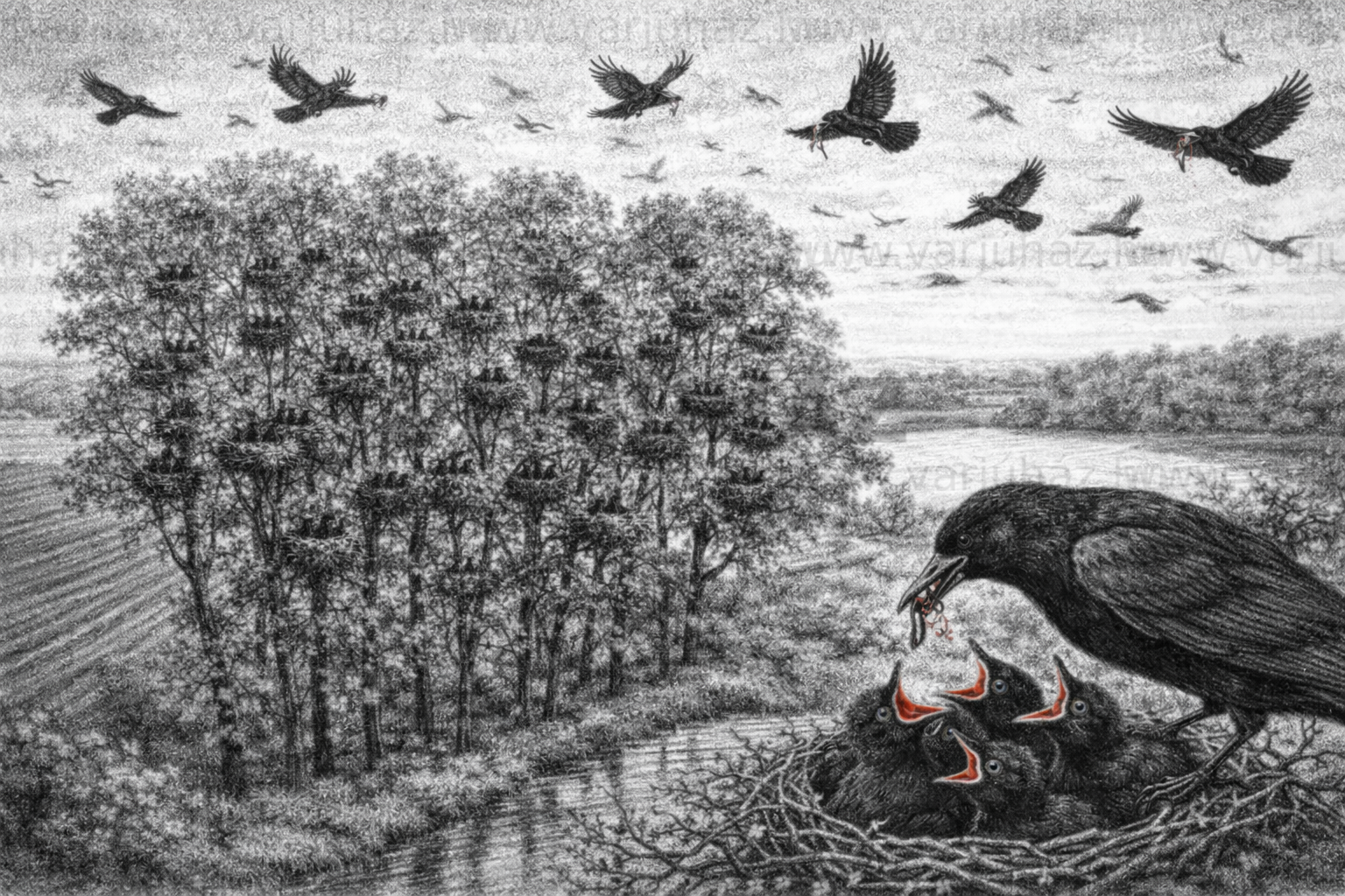 A varjúszülők az első naptól kezdve egyetlen vastörvényt vésnek a fiókák emlékezetébe: „Óvakodj az embertől és a ragadozóktól!”